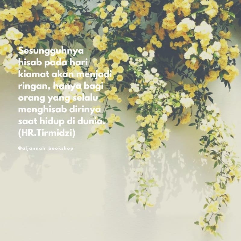 Sesungguhnya hisab pada hari kiamat akan menjadi ringan, hanya bagi orang yang selalu menghisab dirinya saat hidup di dunia.(HR.Tirmidzi) . . #aljannahbooks #aljannahshares #sharingiscaring #quotes #lifequotes #muslimquotes #islamicquotes #lovequotes #inspirationalquotes #motivationalquotes