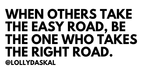 RT @LollyDaskal: When others take the easy road, be the one who takes the right road ~ @LollyDaskal https://t.co/pVKqaI7YVf #TheLeadershipGap #Book #Leadership #Management #Motivation #Inspiration #Quote https://t.co/8dfbUMw5uh