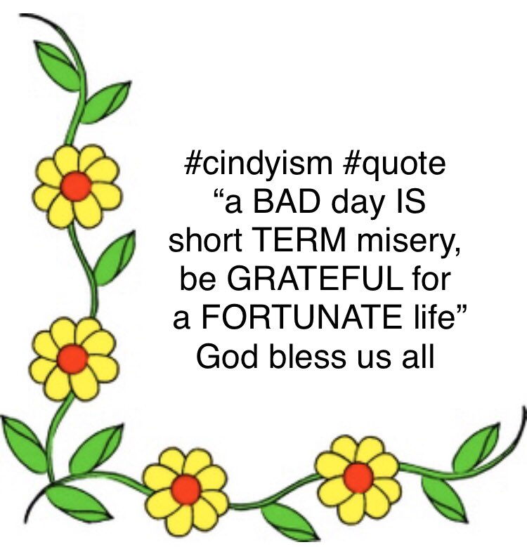 RT @texastwins2004: #cindyism #badday #quotes #inspiration #motivation #grateful #fortunate #redneckgranny #quote “a BAD day IS short TERM misery, be GRATEFUL for a FORTUNATE life” God bless us all https://t.co/xpiJY9xWH0
